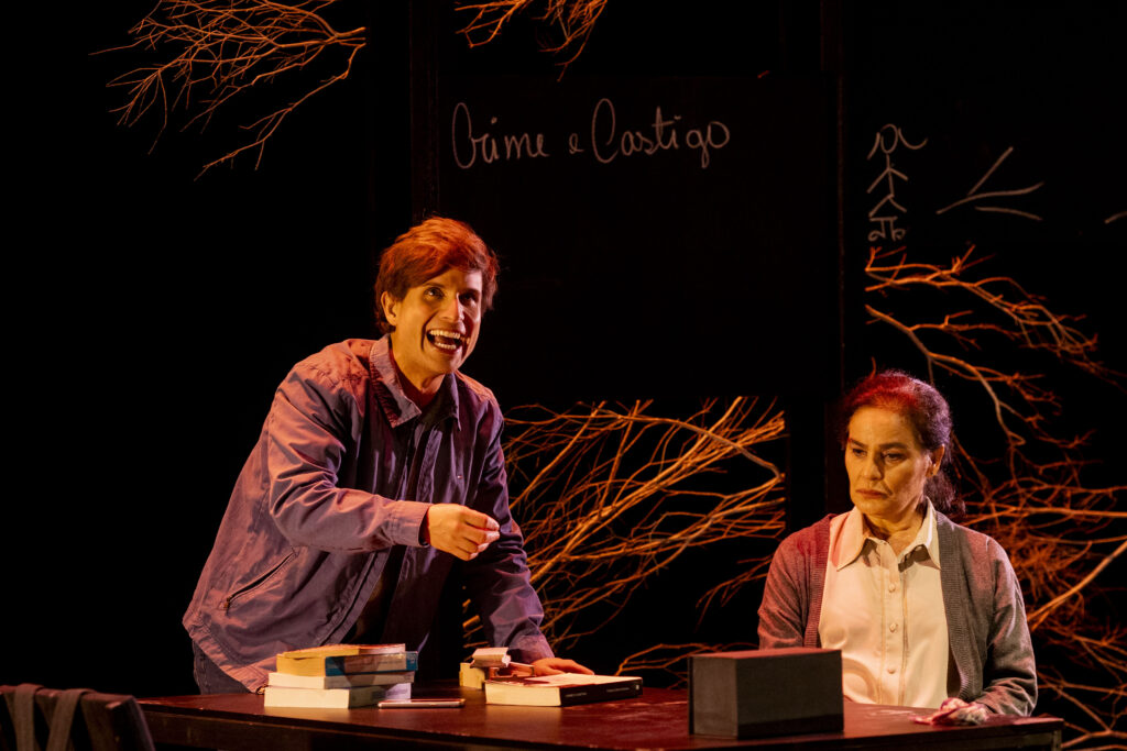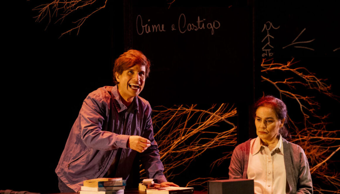 À frente do espetáculo em cartaz no Teatro Glauce Rocha, João Fonseca aproxima o texto do espectador através de citações a escritores e livros brasileiros, mas acertadamente não propõe uma aclimatação da peça ao país. Sem se limitar ao “efeito” sedutor dessas menções e também sem investir em interferências contundentes na dramaturgia, o diretor realça o potencial de envolvimento do texto por meio de uma cena despojada, mas não destituída de inventividade. Entre os componentes da montagem, sobressai o cenário de Nello Marrese, que parte de uma sugestão de ambientação realista, transcendendo, porém, essa moldura. A imagem de galhos retorcidos ao fundo do palco sintetiza a paisagem invernal demarcada no texto e os quadros-negros espalhados pela estrutura vertical, sintonizados com os universos dos personagens, são manipulados de forma criativa, assim como elementos da cenografia, em especial o giz, simbolizando neve, e a mesa, não restritos a funções utilitárias. Os figurinos de Marieta Spada vestem os personagens em acordo com seus perfis e ocupações. A iluminação de Daniela Sanchez contrasta, em certa medida, tonalidades discretas com eventuais explosões de cores. No elenco, Glaucia Rodrigues transita entre a exposição/descrição dos acontecimentos e a instantaneidade da experiência. Nos dois planos, a atriz domina a palavra, qualidade adquirida no decorrer de décadas de trabalho na Cia. Limite 151, um coletivo voltado para a valorização da literatura dramática. André Celant tem alguma dificuldade em imprimir credibilidade às ações e reações abruptas do personagem.