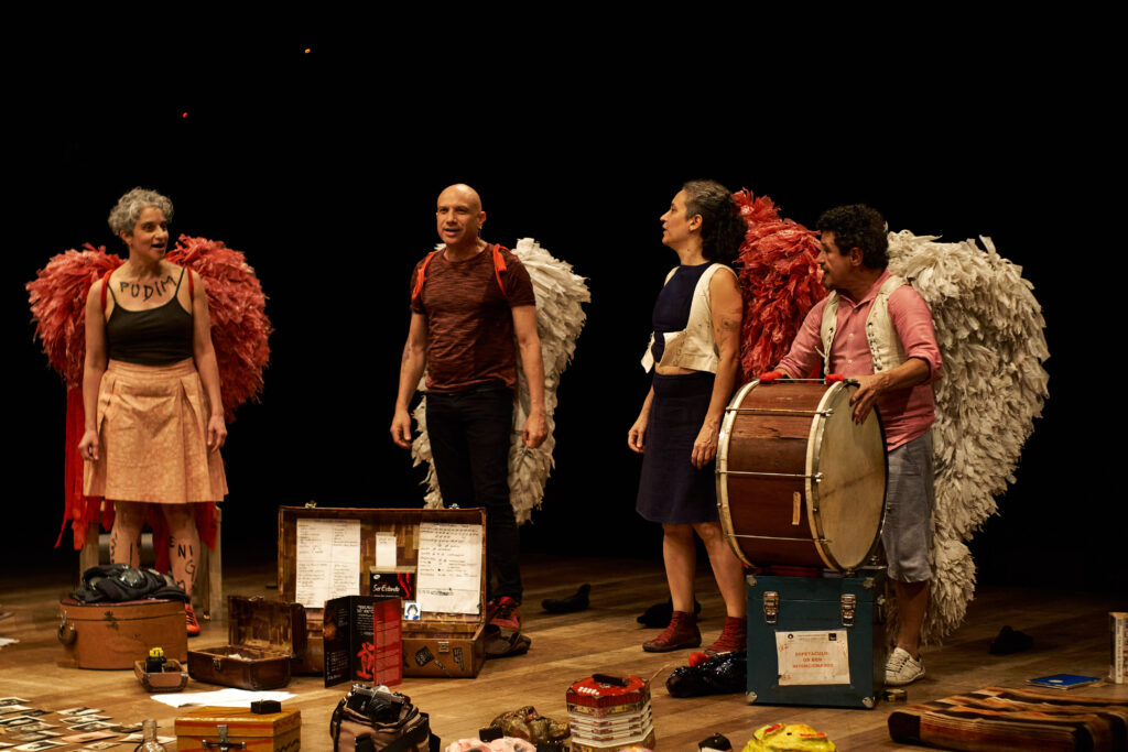 Algumas camadas de memória ganham destaque no decorrer do espetáculo do Grupo Lume, dirigido por Emilio García Wehbi, que encerra temporada amanhã no Teatro III do Centro Cultural Banco do Brasil (CCBB). Os integrantes do elenco – Ana Cristina Colla, Jesser de Souza, Raquel Scotti Hirson e Renato Ferracini – trazem à tona lembranças afetivas individuais, intransferíveis, sintetizadas por objetos antigos, que remetem a um passado mais distante, e por outros recentes. As experiências coletivas também são valorizadas por meio das memórias da jornada em comum dentro da companhia, ligada ao campo universitário (Unicamp) e iniciada há pouco mais de 40 anos ao lado de Luís Otávio Burnier, artista que morreu precocemente; e do cotidiano num país como o Brasil, atravessado por instabilidades e contextos opressivos.